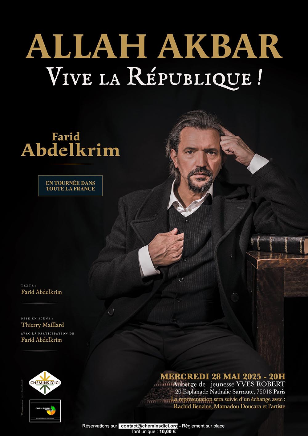 Cette action s’est articulée autour de la représentation de la pièce de théâtre « Allah Akbar, Vive la République », suivie d’un temps d’échanges et de débat avec des intervenants aux profils complémentaires : le comédien Farid Abdelkrim, l’islamologue et romancier Rachid Benzine, ainsi que l’acteur de terrain Mamadou Doucara.